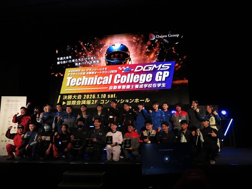 そんなe-DG motorsportsが『東京オートサロン』とタッグを組み、自動車整備士を目指す学生たちのために特別なイベントを開催!!その名も・・・ちょっとタイトルが長いのですが(笑)『e-DGMS by グランツーリスモ オフライン大会@東京オートサロン 2026 Technical College GP』です(^^)/