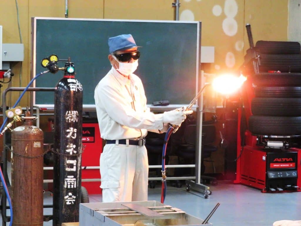 自動車整備士を養成する学校なのに、何故!?ガス溶接の講習をするの??と思った方いませんか??意外に思うかもしれませんが、自動車の整備には、アセチレンなどの可燃性ガスと酸素を用いた金属の『溶接・切断・加熱』作業を行うことがあります。